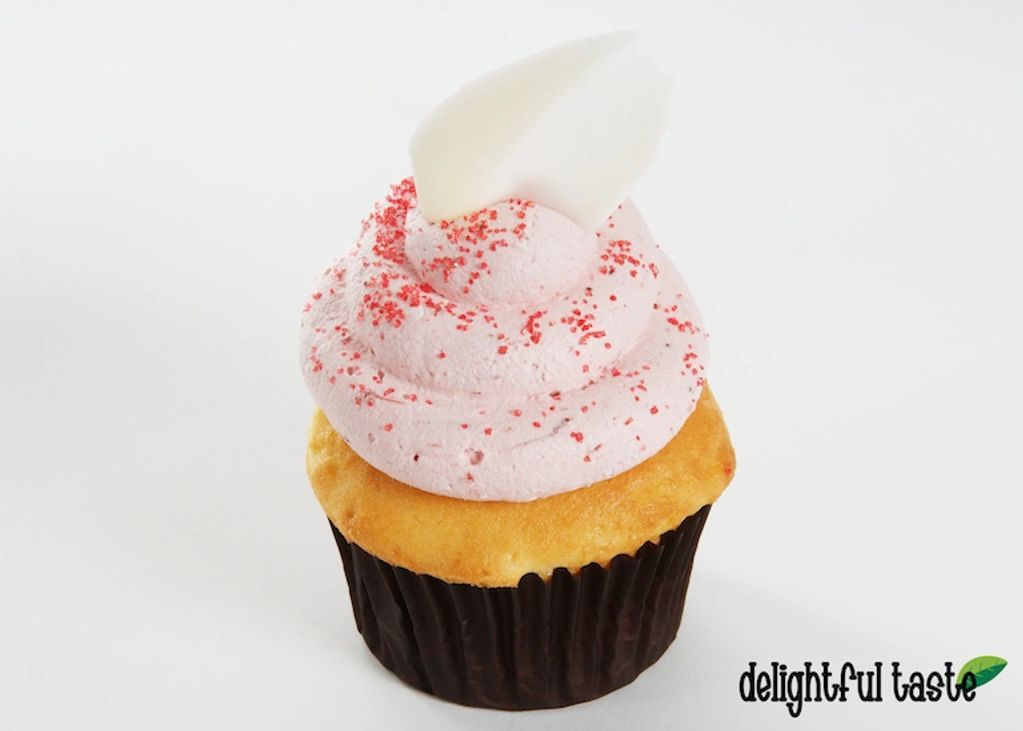 Strawberry Cupcake - Our light vanilla cupcake is filled with a strawberry filling and topped with a strawberry icing.