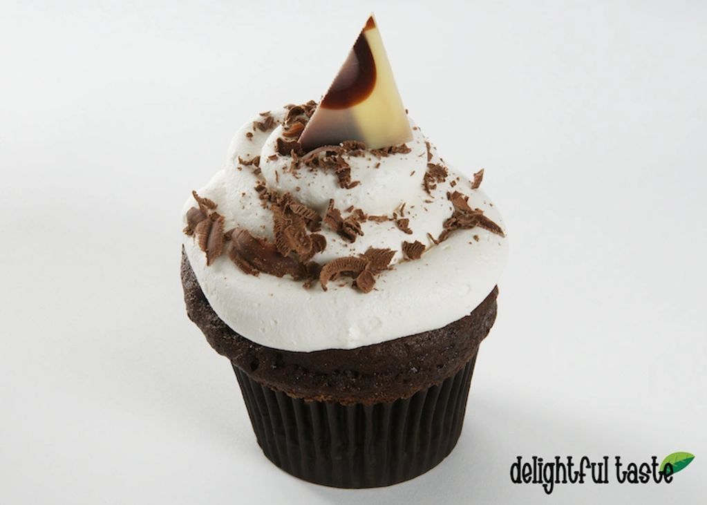 Triple Chocolate - Chocolate cupcake filled with decadent chocolate fudge and topped with a white chocolate ganache icing.